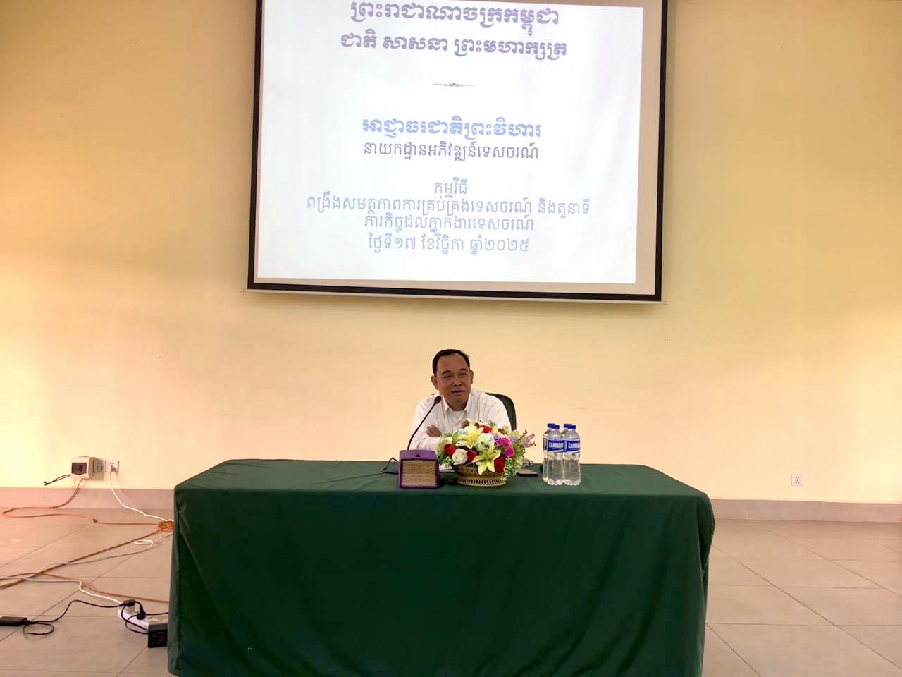 នៅព្រឹកថ្ងៃចន្ទ ១២រោច ខែកត្តិក ឆ្នាំម្សាញ់ សប្តស័ក ពុទ្ធសករាជ ២៥៦៩ ត្រូវនឹងថ្ងៃទី១៧ ខែវិច្ឆិកា ឆ្នាំ២០២៥ នាយកដ្ឋានអភិវឌ្ឍន៍ទេសចរណ៍នៃអាជ្ញាធរជាតិព្រះវិហារ បានបើកវគ្គបណ្តុះបណ្តាលពង្រឹងសមត្ថភាពការគ្រប់គ្រងទេសចរណ៍ និងតួនាទីភារកិច្ចដល់ភ្នាក់ងារទេសចរណ៍ នៅរមណីយដ្ឋានប្រាសាទព្រះវិហារ ដែលមានសិក្ខាកាមចូលរួមសរុបចំនួន២៥នាក់ ក្រោមអធិបតីភាព លោក ហេង សំរឹទ្ធ ប្រធាននាយកដ្ឋានអភិវឌ្ឍន៍ទេសចរណ៍។