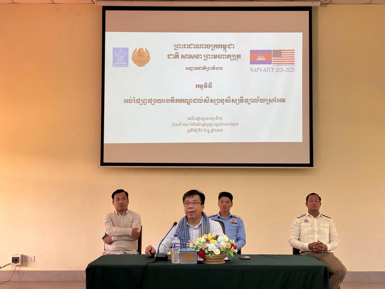 ថ្ងៃសៅរ៍ ១រោច ខែមិគសិរ ឆ្នាំម្សាញ់ សប្ដស័ក ព.ស២៥៦៩ ត្រូវនឹងថ្ងៃទី៦ ខែធ្នូ ឆ្នាំ២០២៥ អាជ្ញាធរជាតិព្រះវិហារបើកវគ្គអប់រំផ្សព្វផ្សាយបេតិកភណ្ឌដល់សិស្សានុសិស្សនៃវិទ្យាល័យស្រអែម ក្នុងគម្រោងអភិរក្ស និងជួសជុលជណ្ដើរបុរាណខាងជើងប្រាសាទព្រះវិហារ ក្រោមមូលនិធិឯកអគ្គរដ្ឋទូតសហរដ្ឋអាមេរិកដើម្បីអភិរក្សសម្បត្ដិវប្បធម៌ ដំណាក់កាលទី៥ (ឆ្នាំ២០២៤ ដល់២០២៥) សរុបចំនួន៨១នាក់ ស្រី៣៧នាក់។ វគ្គអប់រំផ្សព្វផ្សាយនេះផ្តោតលើការងារអភិរក្ស និងជួសជុលជណ្ដើរបុរាណខាងជើង ប្រាសាទព្រះវិហារ ហើយមានគោលបំណងបង្ហាញអំពីសកម្មភាពការងាររបស់អាជ្ញាធរជាតិព្រះវិហារ អំពីការអភិរក្ស និងជួសជុលជណ្ដើរបុរាណខាងជើង ការអភិរក្ស និងជួសជុលចម្លាក់តោនៅជណ្ដើរបុរាណខាងជើង ក៏ដូចជាបង្ហាញអំពីការខូចខាតជណ្ដើរបុរាណខាងជើងក្រោយជម្លោះប្រដាប់អាវុធ និងហានិភ័យនៃយុទ្ធភណ្ឌមិនទាន់ផ្ទុះ។ បន្ទាប់ពីបានស្ដាប់បទបង្ហាញចប់ សិស្សានុសិស្សទាំងអស់បានទស្សនកិច្ចសិក្សានៅសារមន្ទីរធម្មជាតិសាកលសម្ដេចតេជោ ហ៊ុន សែន ព្រះវិហារ។ ជាចុងបញ្ចប់សិស្សានុសិស្សទាំងអស់បានថ្លែងអំណរគុណដល់អាជ្ញាធរជាតិព្រះវិហារដែលបានរៀបចំកម្មវិធីនេះ និងបានផ្តល់ចំណេះដឹងថ្មីៗ និងប្តេជ្ញាថានឹងចូលរួមចំណែកអភិរក្ស និងថែទាំកេរ្តិ៍ដំណែលដ៏អស្ចារ្យនេះឱ្យបានស្ថិតស្ថេរក្នុងនាមជាយុវជនជំនាន់ក្រោយ។