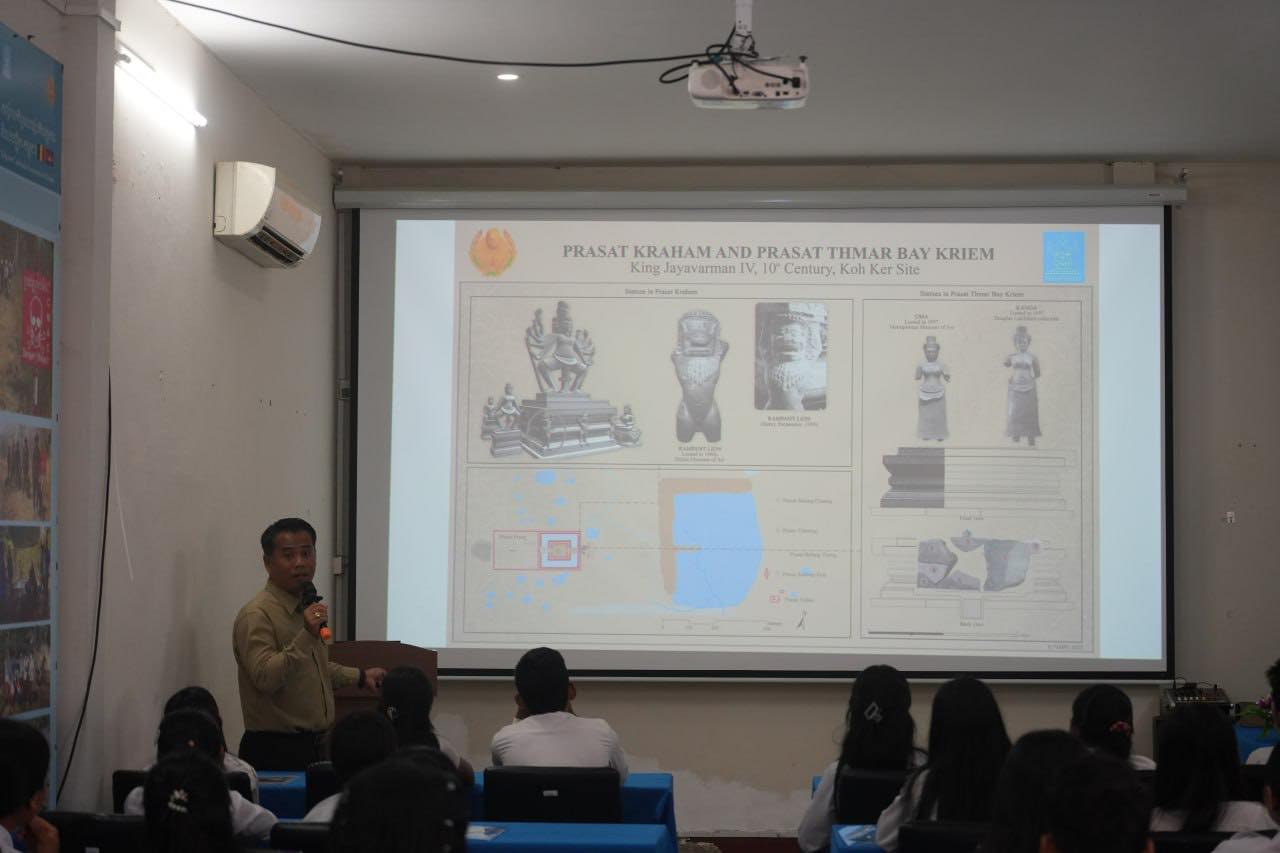 ជាមួយគ្នានោះលោក ថូ ថុន អនុប្រធាននាយកដ្ឋានស្រាវជ្រាវ បណ្តុះបណ្តាល និងតម្កល់ឯកសារ និងមន្រ្តីបច្ចេកទេស ក៏បានដឹកនាំសិស្សានុសិស្សទស្សនកិច្ចសិក្សាស្វែងយល់ដោយផ្ទាល់ តាមប្រាសាទនានាក្នុងរមណីយដ្ឋានប្រាសាទកោះកេរ ក្នុងនោះមាន ប្រាសាទធំ ប្រាសាទចិន និងថ្នាលបណ្តុះកូនឈើ។លោកសង្ឃឹមថាក្រោយឆ្លងកាត់ការអប់រំបេតិកភណ្ឌនេះរួច សិស្សានុសិស្សនឹងបានយល់ដឹងបន្ថែមពីប្រវត្តិសាស្ត្រខ្លះៗនៃរមណីយដ្ឋានប្រាសាទកោះកេរ ជំនឿអរូបី និងស្វែងយល់ពីតម្លៃនៃព្រៃឈើក្នុងតំបន់។